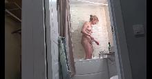 back  Blonde MILF Cindy - Hidden spy cam in the bathroom. (video)
